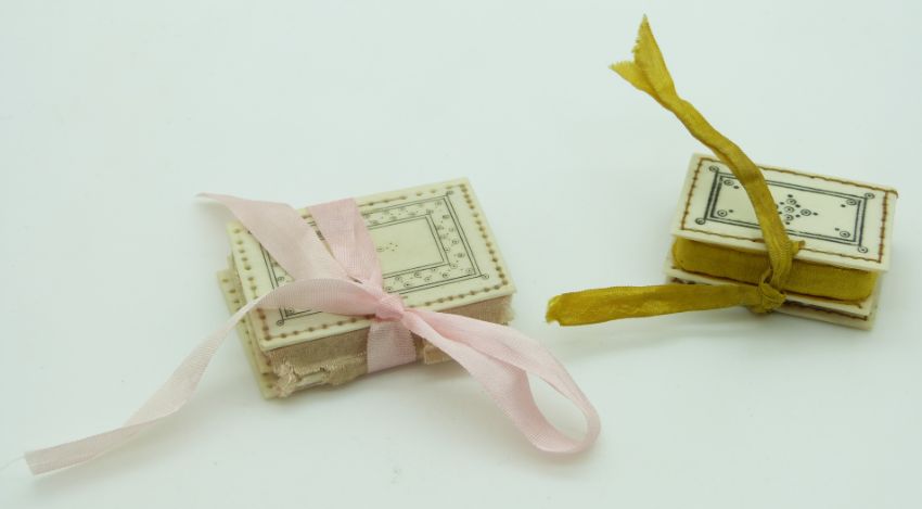 Two 19thC Indian Madras ware ivory pin cushions in the form of books, largest 4.5 x 3cm