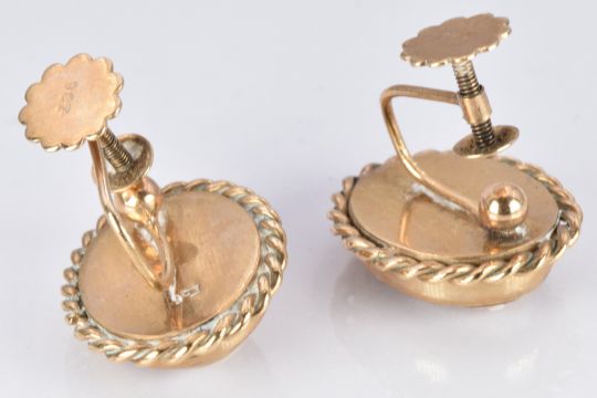 A pair of 9ct gold earrings set with cameos, 3.7g