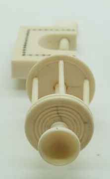 A 19thC Indian Madras ware ivory sewing / needlework pin cushion clamp with winder, height 14cm