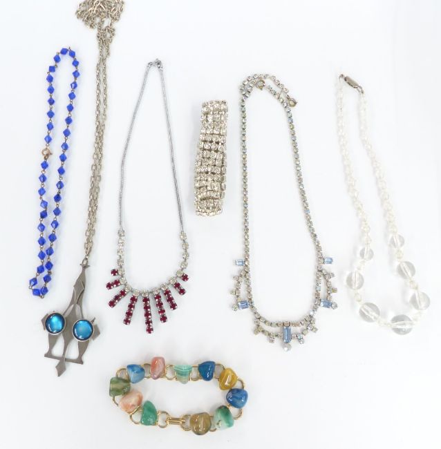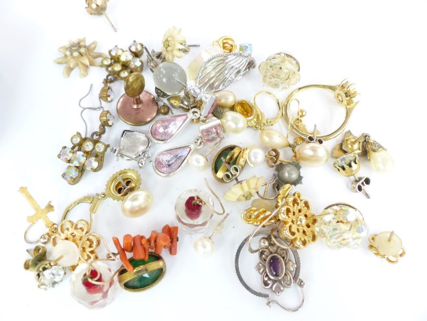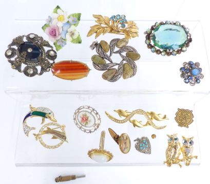 A collection of costume jewellery including diamanté, badges, earrings, Exquisite brooch etc