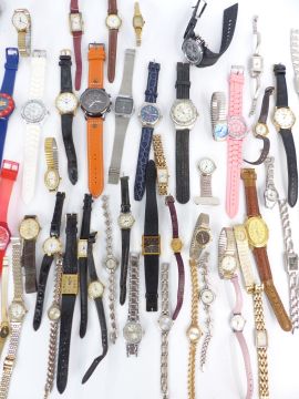 Seventy-two various ladies and gentleman's wristwatches including Smiths calendar, Timex, Cauny, Fossil etc