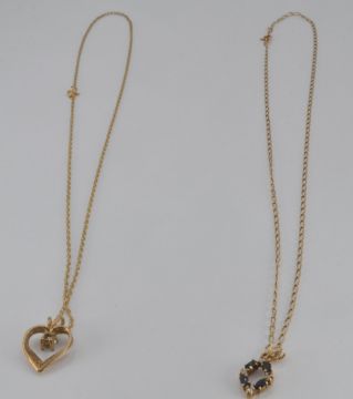 Two 9ct gold pendants on 9ct gold chains, 3.7g