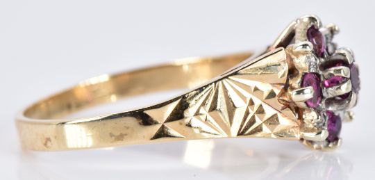 A 9ct gold ring set with diamonds and rubies, 2.7g, size K/L