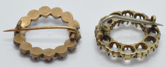 Two Victorian brooches, one set with moonstone cabochons the other Bohemian cut garnets