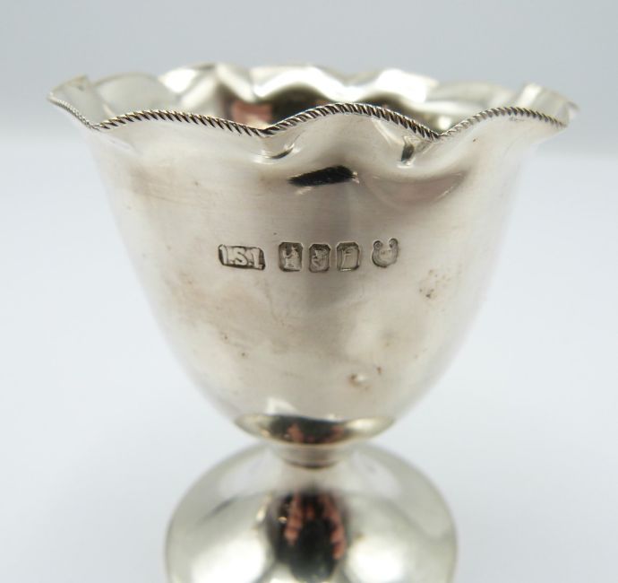 Modern hallmarked silver pepper, London 1979 maker C J Vander Ltd, height 9cm, together with an Irish hallmarked silver egg cup, Dublin 1973 maker Irish Silver Ltd, weight of both 118g