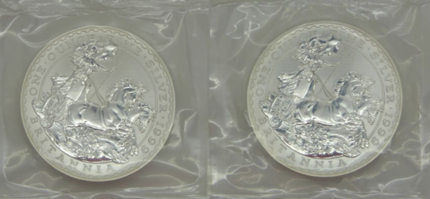 Two 1999 1oz silver Britannias