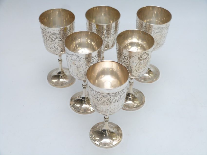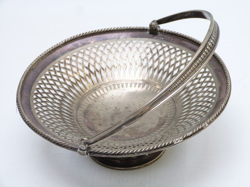Quantity of silver plate including Walker & Hall teapot, teasets, swing-handled basket, set of six goblets, cruets etc