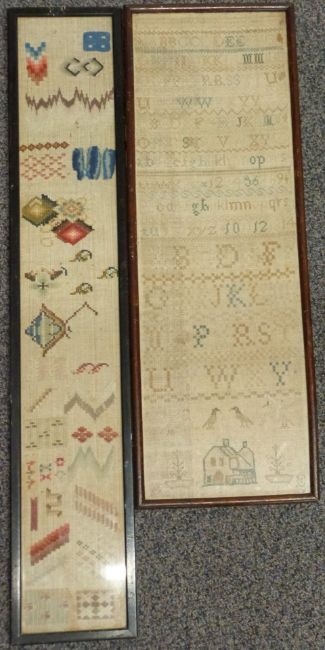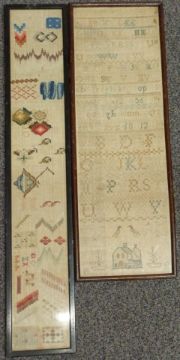 Two 19thC embroidery samplers, largest 60 x 20cm