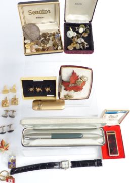 A collection of cufflinks and studs including rolled gold, silver etc, Parker pen, Ronson lighter etc
