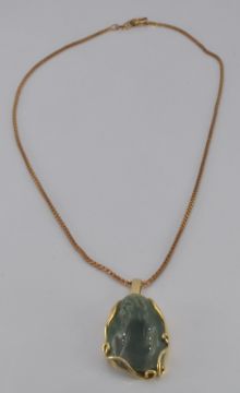 An 18ct gold pendant set with jade (5.1g) on a 9ct gold chain (4.0g)