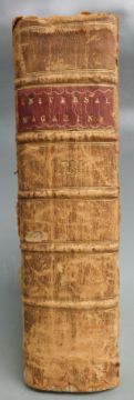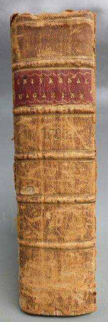 The Universal Magazine of Knowledge and Pleasure with Essays, Literature, Arts and Sciences etc volume LXXVIII printed 1786 first edition complete with 16 plates (including Moose Deer) bound with volume LXXIX printed 1786 complete with 16 plates (including plate of a Universal Equatoreal – a new astronomical instrument) bound in leather backed marbled boards with gilt lettered leather label (1)