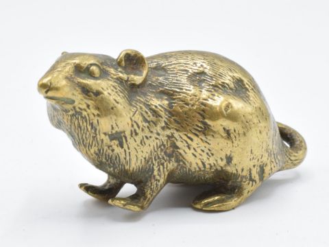 Japanese cast brass model of a mouse/ rat, threaded hole to base, likely early 20thC, H3cm