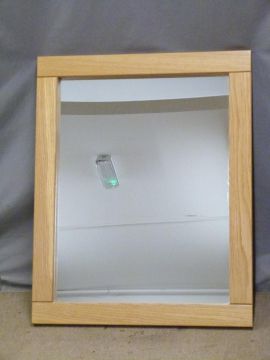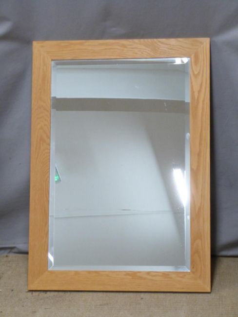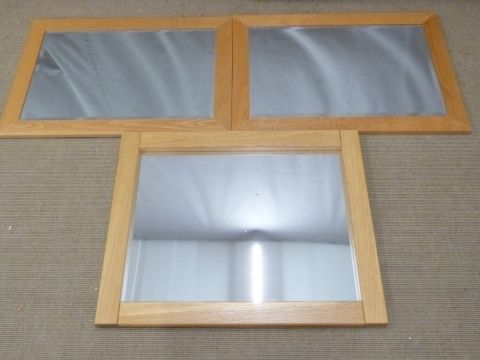 Three light oak mirrors, two with bevelled glass, largest 70 x 88cm