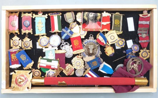 RAOB and other medallions to include hallmarked silver gilt examples, Slimbridge Lodge past chair example, RAOB GLE, Stroud and District Knights Chapter,