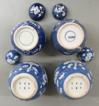 Two pairs of Chinese 19th/20thC covered ginger jars, one pair with six character mark to base, H19cm