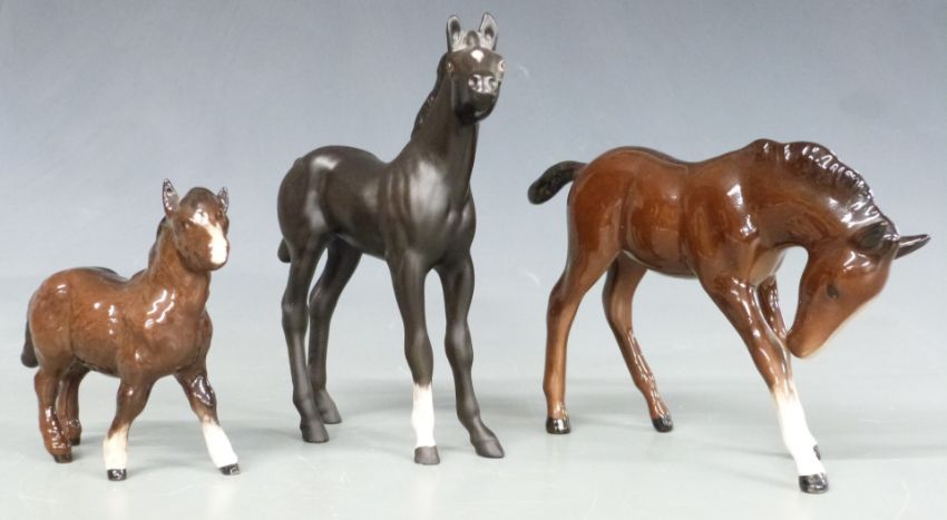 Beswick 818 Shire, grey Stocky Jogging Mare and three foals, tallest 21cm