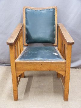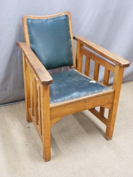 Arts and Crafts oak upholstered adjustable arm or steamer chair