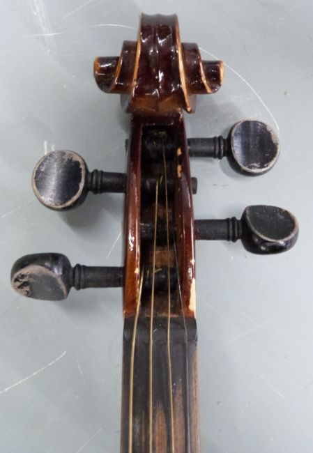 Child's vintage Czechoslovakian violin labelled 'Tatra by Rosetti, Stradivarius model', 32cm two-piece back, complete with two bows and original case