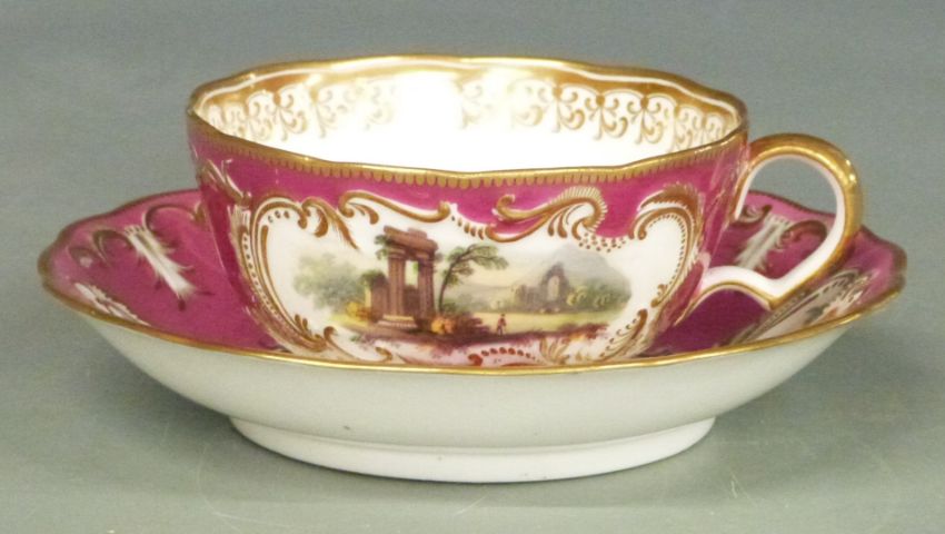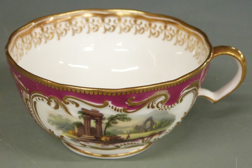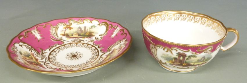 Minton cup and saucer decorated with landscape scenes