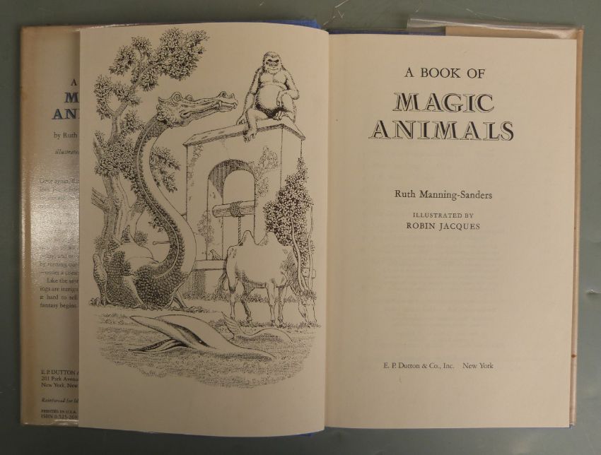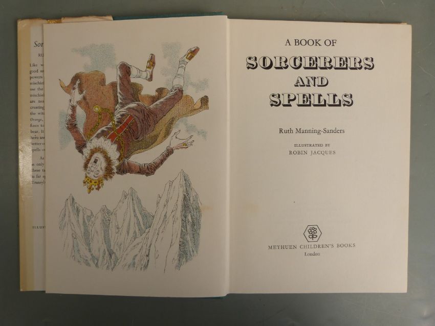 [Robin Jacques Illustrator] Ruth Manning-Saunders Collection including Magic Animals 1975, Sorcerers And Spells 1973, Ogres And Trolls 1972, Sir Green Hat and The Wizard 1974, Magic Adventures 1983, Ghosts and Goblins 1968, Mermaids 1967, Wizards 1966, Charms And Changelings 1971, Dragons, Giants, Enchantments and Curses, Devils and Demons, Monsters, The Red King and The Smugglers, mostly first editions and most in colour dust-wrappers (16)