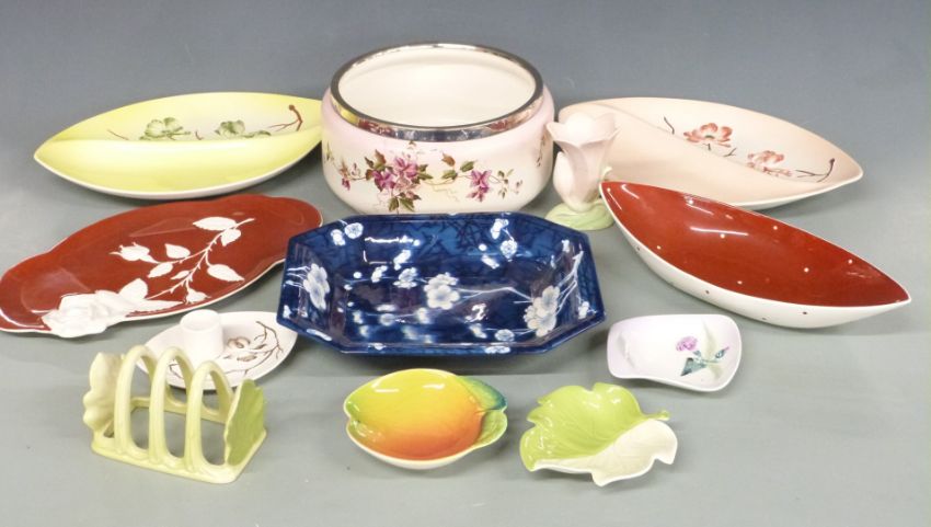 A collection of Carltonware including a covered ginger jar, mustard, prunus dish, bowl with plated mounts, polka dot etc