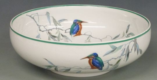 Royal Doulton large pedestal bowl decorated with a kingfisher, H12 x diameter 37cm