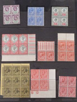 A sheet of mint blocks of GB definitive stamps Victoria - George V including corner block of six 1887  4 1/2d