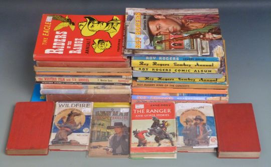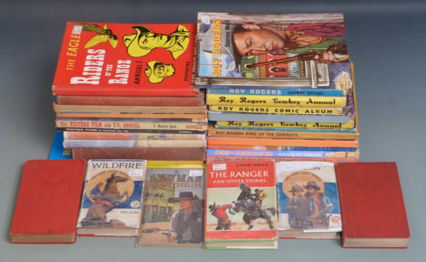 Thirty-five Western annuals and books including Roy Rogers, Western Stars, Buffalo Bill etc, all UK issues.
