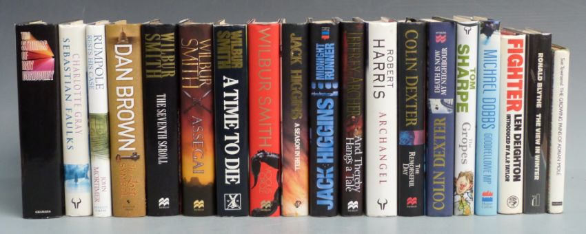 [Modern Fiction] Colin Dexter The Remorseful Day 1999 first edition signed presentation copy, Robert Harris Archangel 1998 first edition signed presentation copy, A Time To Die, Assegai, The Seventh Scroll and Vicious Circle by Wilbur Smith (four volumes), The Stories of Ray Bradbury 1980, Jeffrey Archer, Sebastian Faulks, Dan Brown, Tom Sharpe, Jack Higgins and Len Deighton etc, all in dust-wrappers (19)