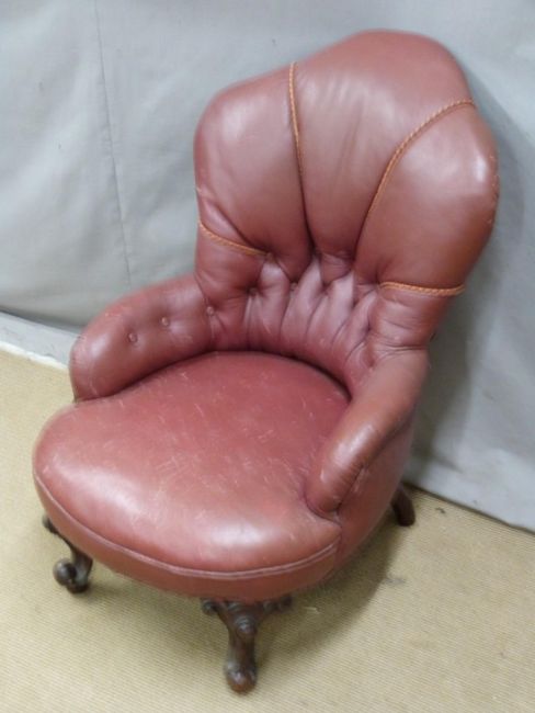 A small faux leather nursing chair and a Victorian mahogany upholstered spoonback chair