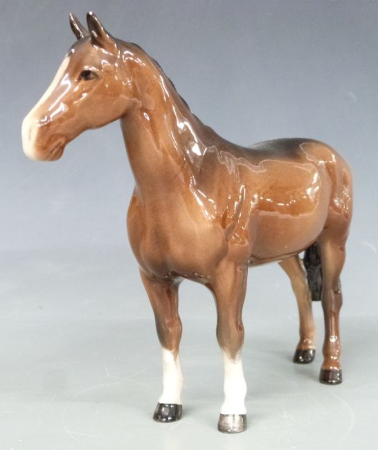 Four Beswick Horses including The Winner, brown Hackney, Welsh Cob and Huntsman's Horse, tallest 24.5cm