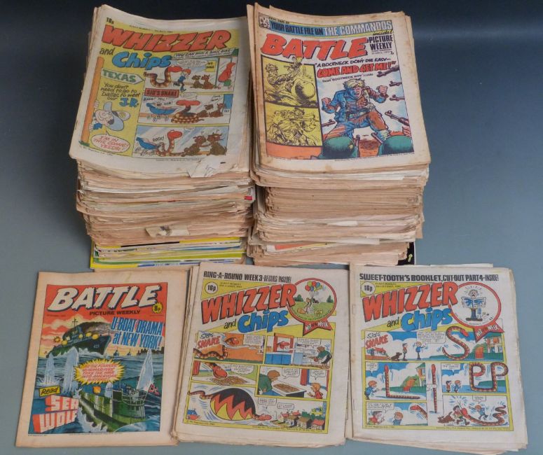 Approximately 250 Fleetway and IPC comic books/ magazines including Whizzer and Chips, Battle Picture Weekly, Whooper etc, mainly 1970's and 1980's.