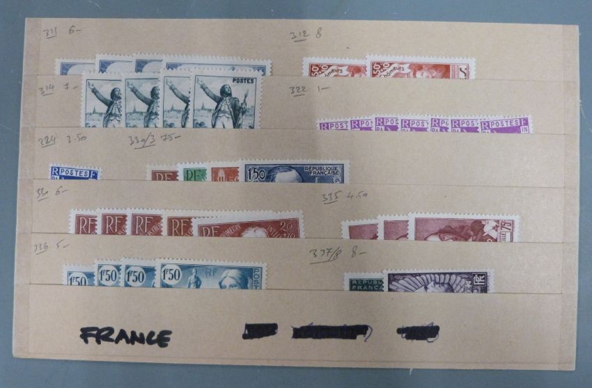 France mint and used stamps on old stockcards from 1849 early Ceres and Napoleon III used classics to mint 1940s with some light duplication