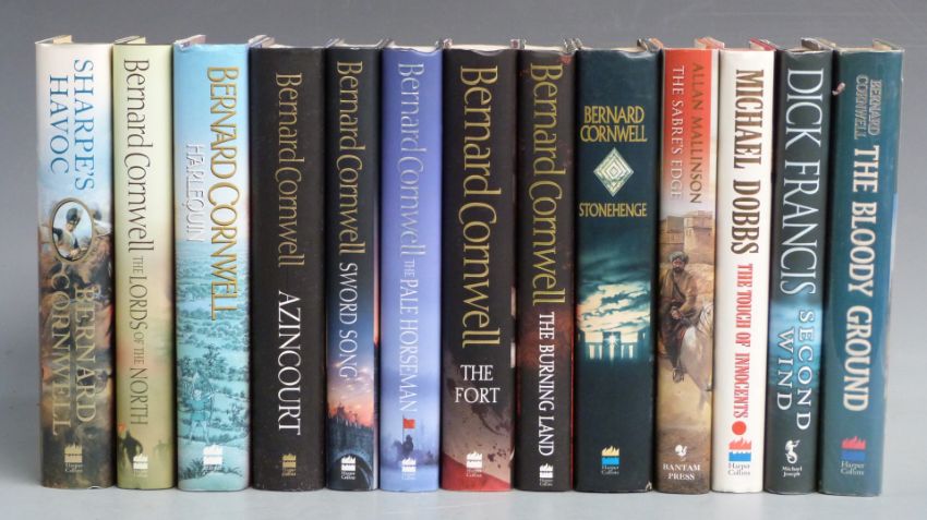 [Modern Fiction] Bernard Cornwell’s Stonehenge, The Burning Land, Azincourt, The Pale Horseman, Sharpe’s Havoc, The Bloody Ground and five others, Allan Mallinson, Michael Dobbs and Dick Francis – all in dust-wrappers (14)