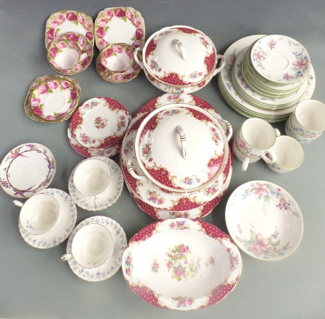 Royal Doulton dinner and tea ware in Carmel pattern, Paragon, Rockingham including two tureens, Royal Albert etc, approximately 56 pieces