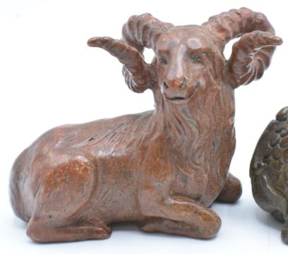Four Japanese bronzes, a lion, octopus, dragon, and ram, all marked to base, largest 5.5 x 4.5cm
