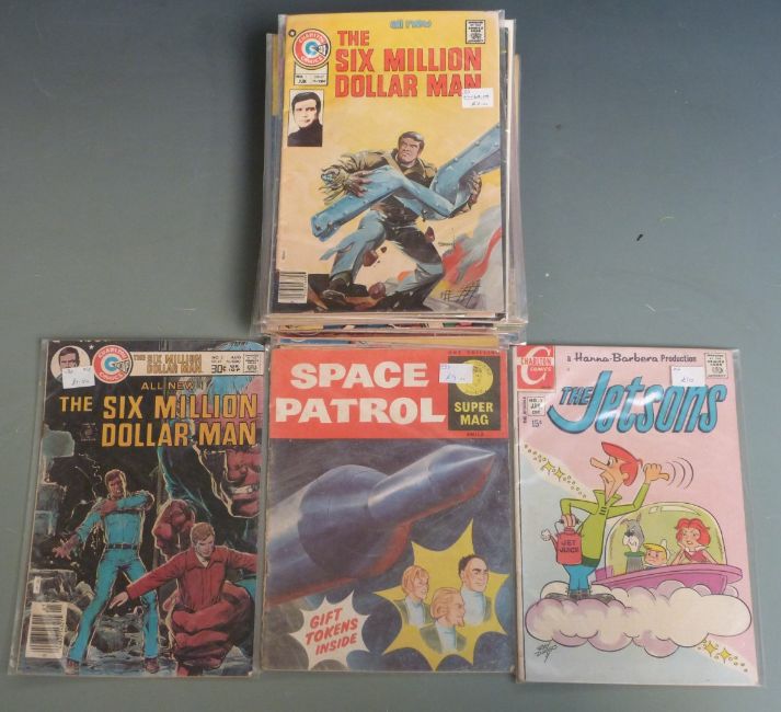 Thirty humorous and TV spin-off comic books including Space Patrol, Six Million Dollar Man, Star Trek, The Jetsons, Sgt Bilko etc.