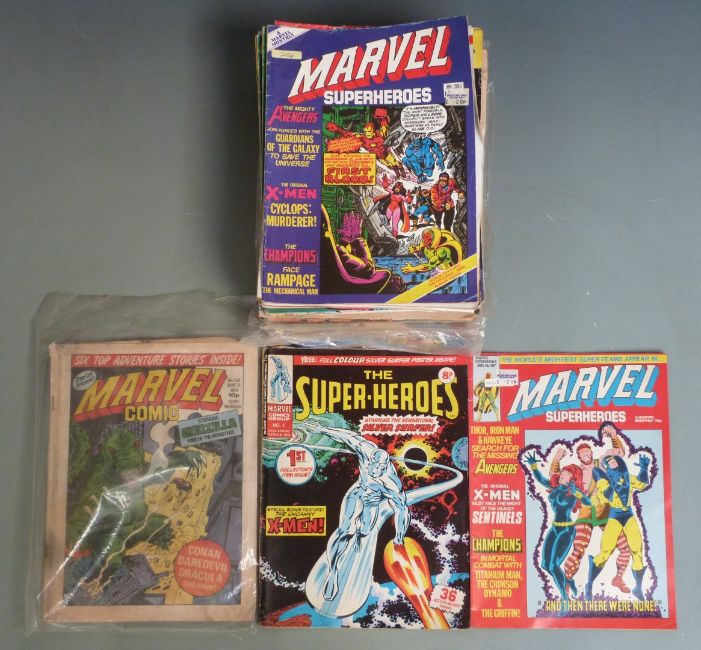 Sixty-six Marvel comic books including The Super-Heroes, Spider-Man, The Mighty World of Marvel etc.
