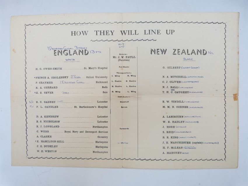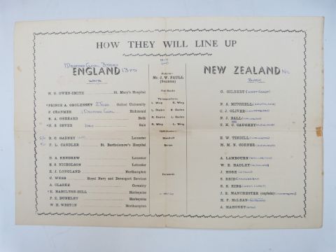 Two Rugby programmes New Zealand v Somersetshire and Gloucestershire 1935 and England v New Zealand (All Blacks) Twickenham 1936
