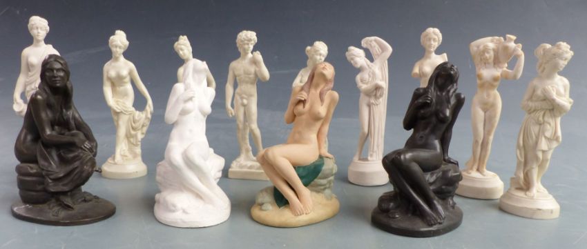 A group of Heredities and other classical style figures and an Art Nouveau style Portuguese lustre vase