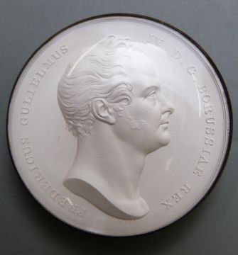 Victorian cased commemorative frosted silver medal / medallion under glass for Friedrich Wilhelm IV's visit to London 1842, designed by Benjamin Wyon, ex Douglas - Cooper family
