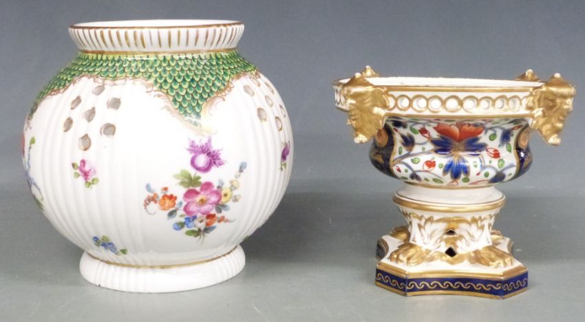 Bloor Derby pot pourri, Spode, Imari candlestick, pierced tazza base etc, tallest 16cm