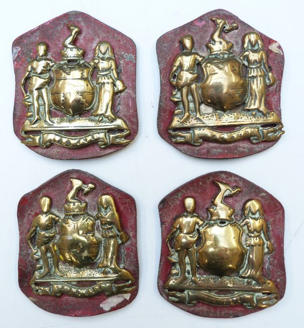 Four 18th/19thC horse brasses, probably Birmingham coat of arms