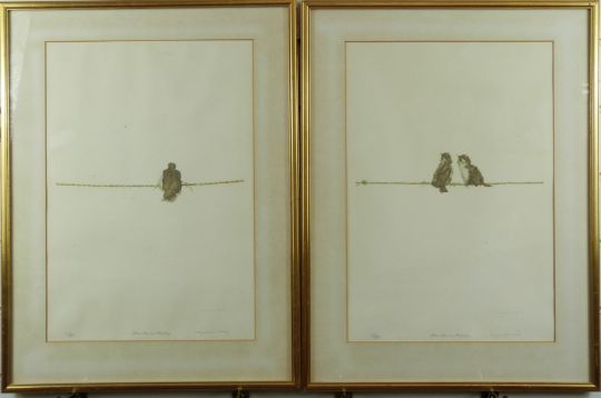 Raymond Harris Ching (b1939) two signed limited edition prints of House Sparrow fledglings, 46 x 31cm