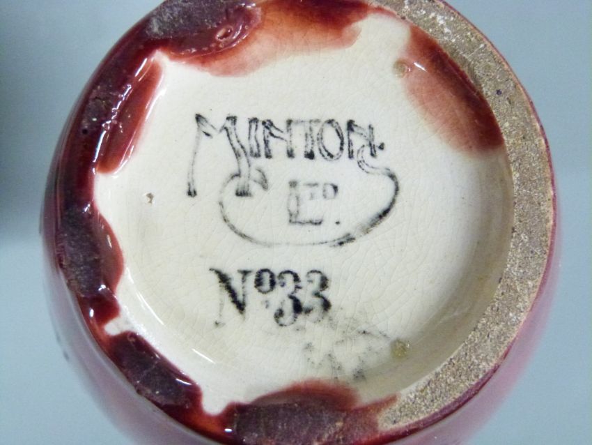 A pair of 19thC Minton Secessionist vases, no 33 to base, H19cm