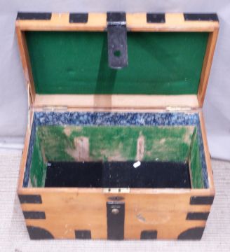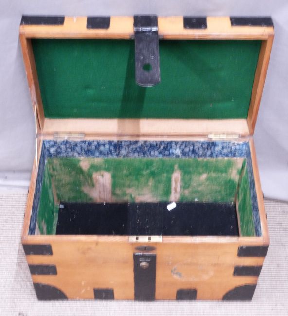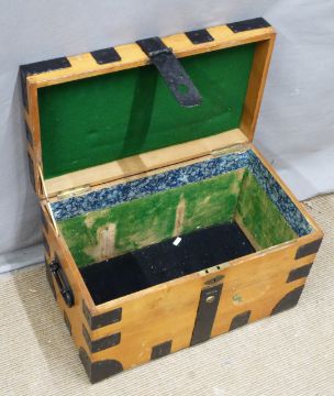 Victorian ash or similar silver travelling trunk with steel fittings, with brass plate for Martin & Co. Goldsmiths to the Queen, Cheltenham, W54 x D31 x H36cm