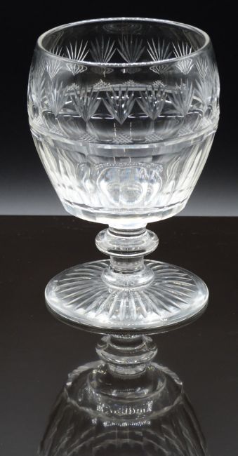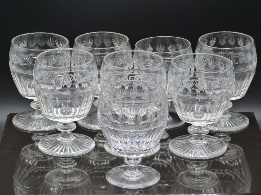 Victorian set of six cut glass rummers with stepped stems and fan cut feet, 13.5cm tall together with two additional similar examples