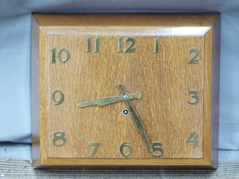 Art Deco wall clock with brass numerals and hands, W36 x D30cm