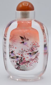 Chinese reverse painted glass scent bottle decorated with birds and foliage, H9cm