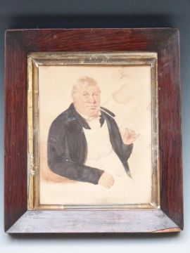 19thC Bridgnorth theatre flyer or poster dated 1834, 25 x 18.5cm, together with a 19thC portrait of a man smoking a clay pipe, in rosewood frame